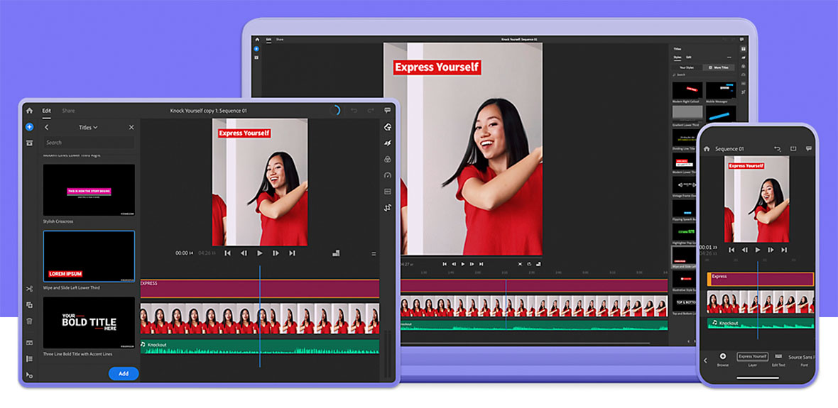 이런 변화가 계속되고 3년 후, 5년 후를 생각해보자. 사실 이런 시기를 정확하게 언급하는 게 참 의미가 없다는 생각이 든다. 선행 UX / 컨셉 디자인 관련 프로젝트를 하면서 느끼는 점은, 예를 들어 5년 후, 10년 후 이런 것들이 중요해질 것이다, 라는 이야기를 하면 그 시기가 가까이 다가오기도 전에 어느 순간 변화가 이미 일어나있다. 특히 근래에는 코로나 때문에 디지털화의 속도가 가속화되어서이기도 하다. 하지만 이런 흐름이 계속 되고 더 쉬운 서비스와 툴들, AI와 ML이 결합된 창작 방법 속에서 새롭게 이런 분야에 진출하는 사람들이 사용하게 되는 툴이 그 때 까지도 이런 전문가용 프로그램들일까? 물론 기존의 전문가용 툴을 만드는 회사들에서도 점점 새로운 인터페이스를 도입하기도 하고, 특히 어도비의 경우는 비슷한 제품군에서 훨씬 간소화된 버전을 제공하는 방식으로 이 흐름을 따라가고 있다. 예를 들어서 영상 편집 프로그램인 Adobe Premiere에서 빠른 편집기능을 강조하는 Adobe Premiere Rush를 만들어서 SNS 컨텐츠 편집 등 가벼운 작업에 활용할 수 있도록 제품군을 세분화하고 있다.