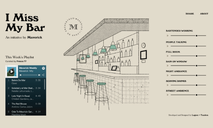 A modern digital artifact recreating the atmosphere of our favorite local bars to keep us company while it’s safe to visit them again. An initiative by Maverick Monterrey.