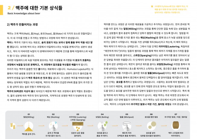 맥주에 대한 기본 상식들은 내가 따로 샀던 맥주 관련된 자료에서 번역해서 넣기도 하고, 일러스트를 추가하기도 하고... 역시 일을 제외한 딴 짓은 재미있다. 전반적인 내용 자체는 시서론에서 제공되는 무료 자료를 정돈하고 주석 등을 추가하는 정도이다. 너무 바꾸면 시험에서 나오는 것과 너무 다를 것 같아서 애매하기도 했고...