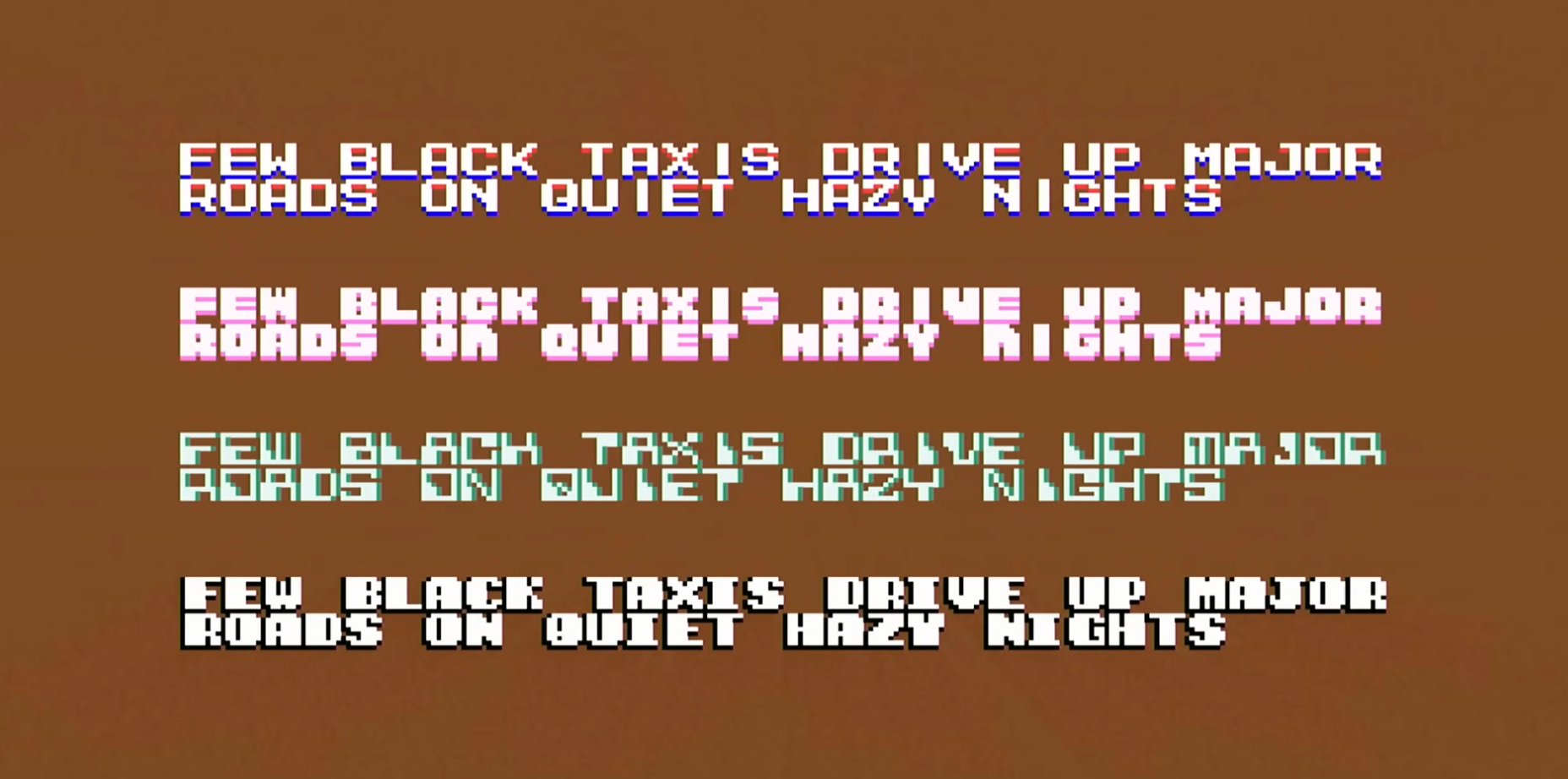 8x8. 한 글자 당 64개의 픽셀 안에서 대문자, 소문자, serif, san-serif, italic, bold, handwriting 등의 다양한 표현이 가능했다는 것 뿐만 아니라, 지금은 뭐라고 정의내리기도 힘든 sci-fi체 등 정말 독특한 방식의 스타일까지 있었고, 다양한 색상을 사용해서 입체감이나 효과를 내기까지 했다는 걸 보면 경의롭기까지 하다.