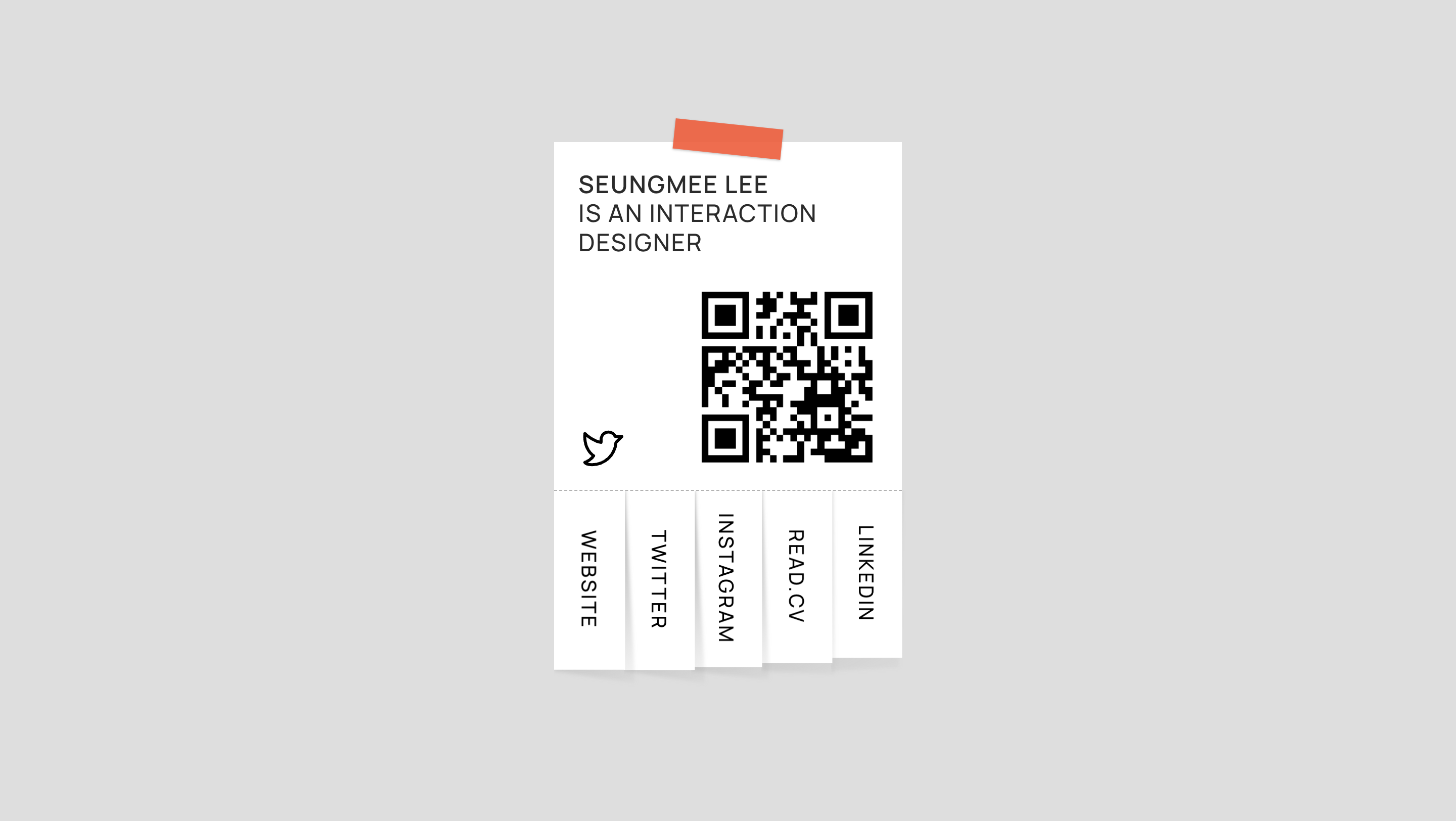위의 이미지는 내가 만든 원페이지짜리 오프라인 네트워킹용 웹사이트다. 아래 종이 가닥(?)을 뜯으면 그 소셜 플랫폼의 QR 코드가 뜬다. 너무나 간단한 디자인이지만, 이 사이트 하나로도 디자이너들이 어떤 툴로 만든 웹사이트인지, 다른 소셜 플랫폼은 뭐가 있는지 이야기가 이어지고, 미약하게나마 내 디자인 스타일을 보여줄 수 있기도 해서 시간 투자 대비 정말 유용하게 쓰고 있다.